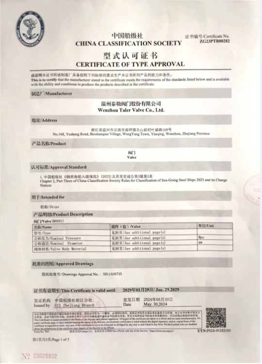 公司研发制造各类船用阀门及控制系统,均按GB、CB、JIS的最新标准生产,作为中国船舶工业总公司联营企业、中国船舶重工集团七0四所主任委员单位和全国船用机械标准委员会的会员单位参与船用阀门最新标准的制订。公司严格按ISO9001质量管理体系要求进行内部管理,是温州首批通过中国船级社型式认可的企业,可根据客户需要提供CCS、LR、GL、BV、ABS、JIS、DNV、ZC、ZY等船级社或相关机构颁发的产品检验证书,目标是为客户提供可行的全套工程解决方案和优质的产品。深受国内外航运和海洋工程领域的好评,您们的满意是泰勒人的目标。