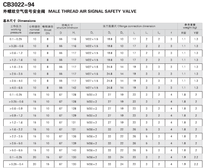 CB3022-1994 外螺纹空气信号安全阀
