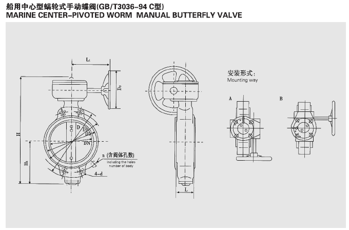 GB/T3036-94 船用中心型涡轮式手动蝶阀C型