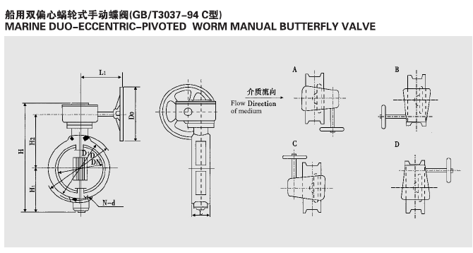 GB/T3037-94C 船用双偏心涡轮式手动蝶阀 C型