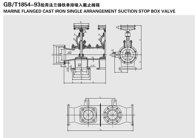 GB/T1854-93 船用法兰铸铁单排二联截止阀箱R型、RS型